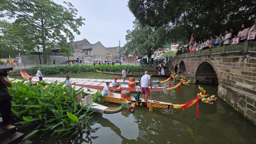 在岭南水乡,有一套关于端午龙船的完整仪式,包括起龙、采青、赛龙、藏龙、散龙,其中“起龙”象征唤醒龙船之魂,是端午龙船季的开端。活动当天,大岭村特别举行了一场传统的“醒龙点睛”仪式,随着朱砂点染龙首,“龙”被唤醒,寓意平安吉祥,现场掌声雷动。