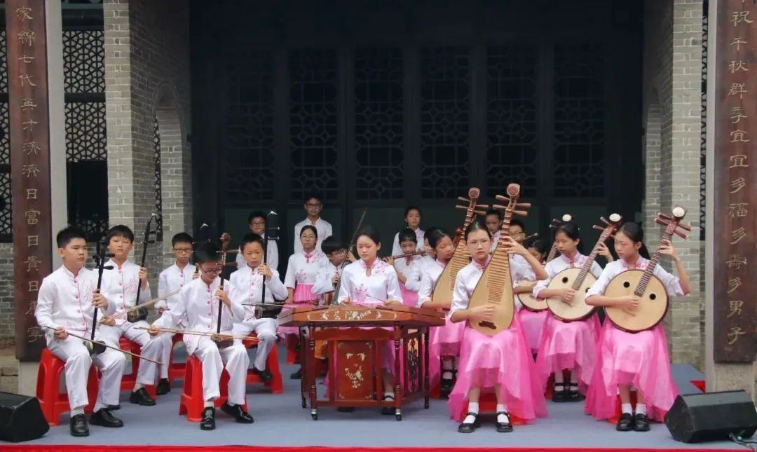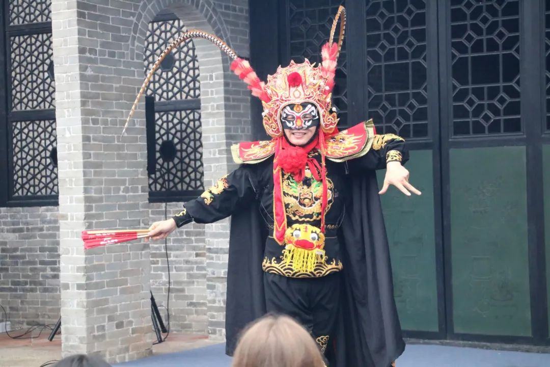 活动当天,大岭村永思堂内还举行了内容丰富的文艺展演,让外国留学生和游客体验到多元文化交融的魅力。番禺区傍东小学民乐团带来了多首广东音乐演奏,一首旋律热烈激昂的《赛龙夺锦》拉开文艺展演序幕,随后,《雨打芭蕉》《饿马摇铃》相继上演,外国留学生沉浸在充满岭南特色的广东音乐当中。川剧变脸、意大利歌曲演唱、中外学生合唱等多个节目陆续上演,这场文艺展演让大岭村龙舟传统习俗文化活动氛围达到了高潮。