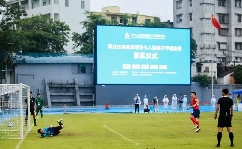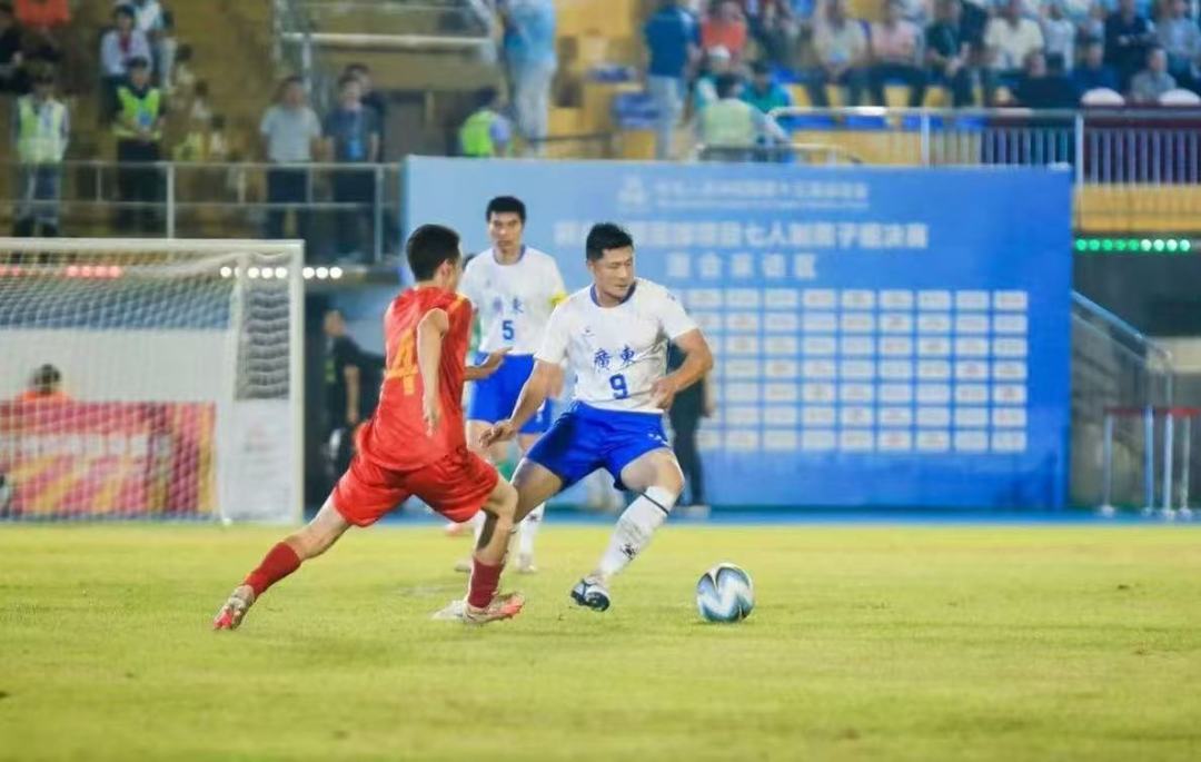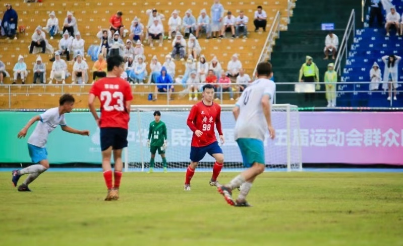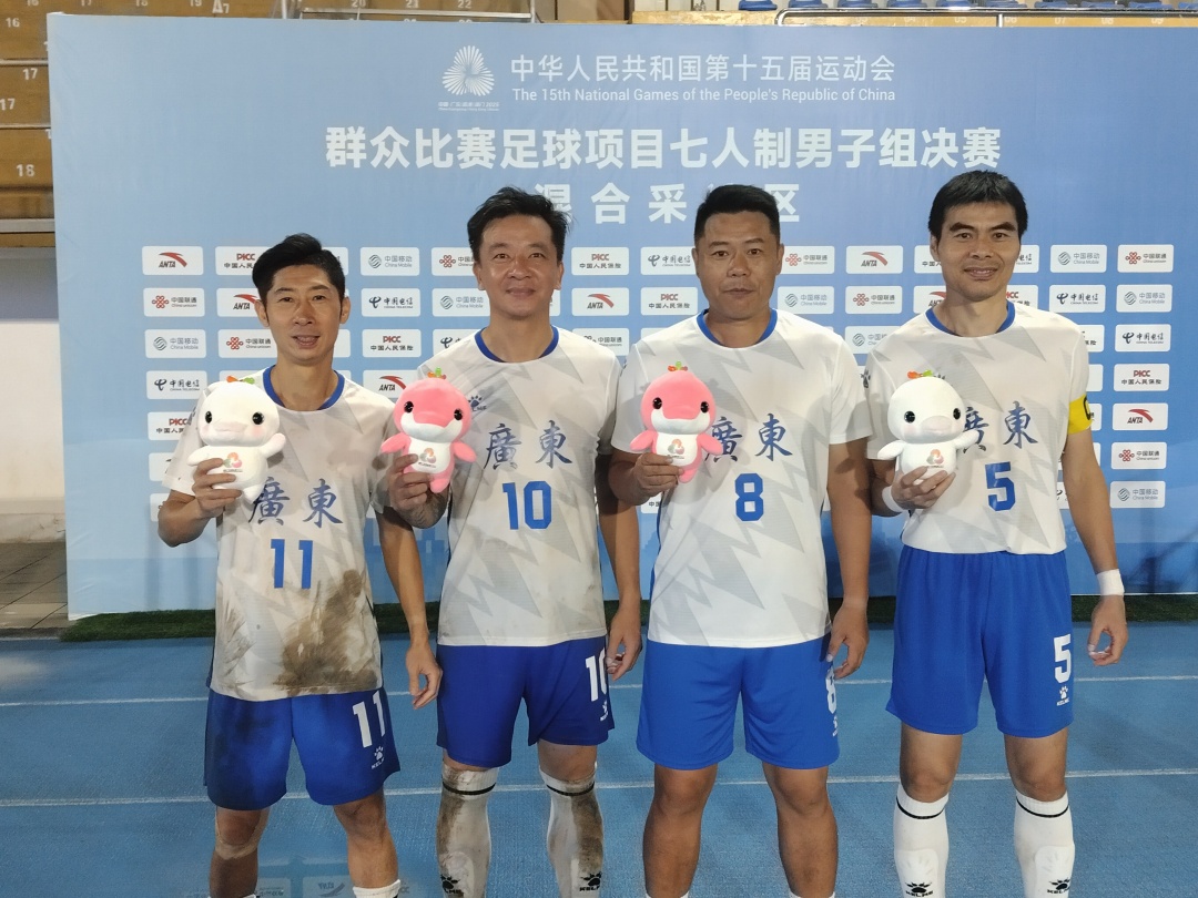 点球大战中,广东队顶住压力,5轮罚球弹无虚发,以5比4力压新疆生产建设兵团代表队,以总比分6比5战胜对手夺得甲组冠军,这也是十五运会群众赛事活动中足球的首枚金牌。