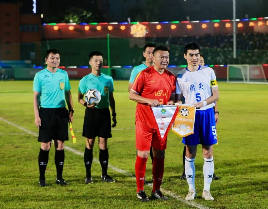 广东队在队员袁琳的率领下,全队面对由魏群、姚夏、邹侑根等名将组成的四川队并不保守,从一开场就采取了地面配合推进加压迫式踢法。开场仅15分钟,谢明华就为广东队先下一城。仅仅2分钟后,罗勇为广东队再下一城。第25分钟,李海强左路下底传中,罗勇包抄又告得手。罗勇在本届赛事老将组的6场比赛中个人独中9球。半场战罢,广东队取得3比0的巨大领先优势。
