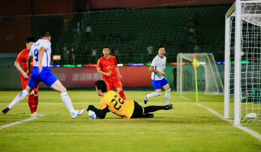 先失一球的新疆生产建设兵团代表队随即发起猛攻,4分钟后,新疆生产建设兵团代表队获得任意球机会,6号球员麦尔旦•奥斯曼近距离射门,将比分扳平。