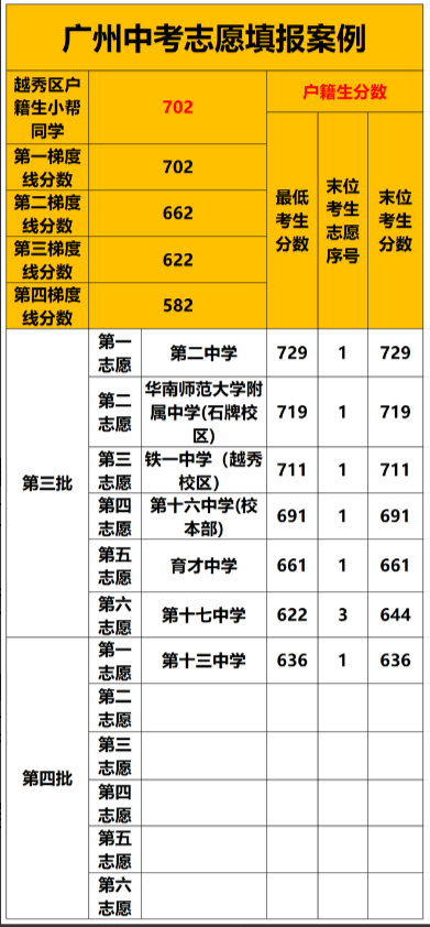 3、第三志愿培正中学的最低录取分数为672分,属于第二梯度。但其在第二梯度第一志愿就已录满,小帮在第三志愿填报,故未能被录取;
