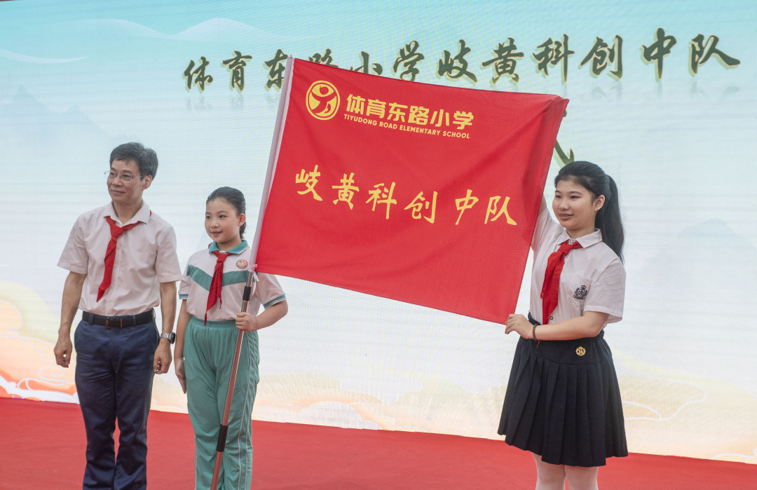 当天,体育东小学的孩子们载歌载舞,展示了对中医药文化的传承和感悟。德叔寄语孩子们通过学习中医药文化,强健体魄,培养家国情怀,成为传承中医药文化的新时代接班人,并为孩子们带来了团队中医养生科普书籍和中草药种子作为六一儿童节礼物、向“岐黄科创中队”授队旗。在中医药游园会,孩子们展示了科创融入中医传承的各种小发明、小创意。广东省中医院德叔团队带领同学们练习中医八段锦健身操、解答孩子们的健康养生疑问,赠饮养生凉茶。孩子们度过了一个传统与现代融合的有意义节日。