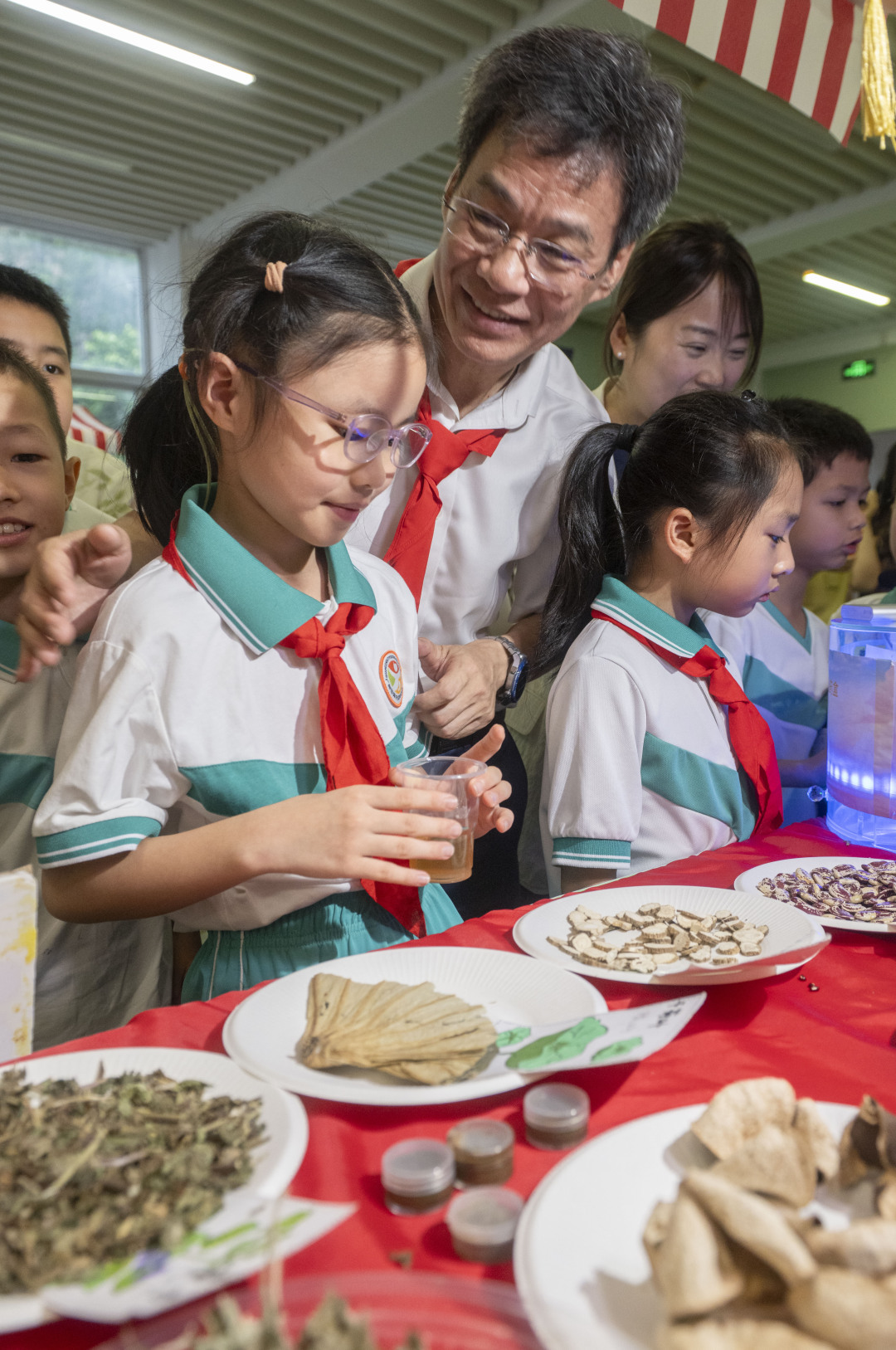 孩子们用科学的视角创新传承中医药文化,一个个奇思妙想让中医人激动又惊叹。“你们的科学创新思维让我深受震撼,让我看到了中医药文化的未来大发展。很多我们临床医生想做的,你们都想到了!这是真正的守正创新,未来可期!”5月29日,天河区“岐黄育心·科创同行”中医药文化进校园活动在体育东小学启动,广东省中医院院长张忠德(德叔)现场为孩子们点赞。活动中,广东省中医院与天河区教育局签署了中医药文化进校园合作协议,接下来双方将在课程开发、资源共享、实践基地建设等方面展开深入合作。
