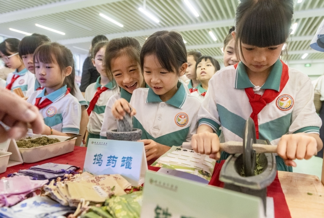 体育东小学校长陈品花介绍,学校将中医药文化瑰宝与前沿科技创新深度融合,通过为期2个月的跨学科项目式学习,让孩子们感受到中医文化的博大精深,通过沉浸式体验与互动实践,引导学生感悟传统智慧、激发科学思维,为培养兼具文化自信与创新能力的未来人才注入活力。
