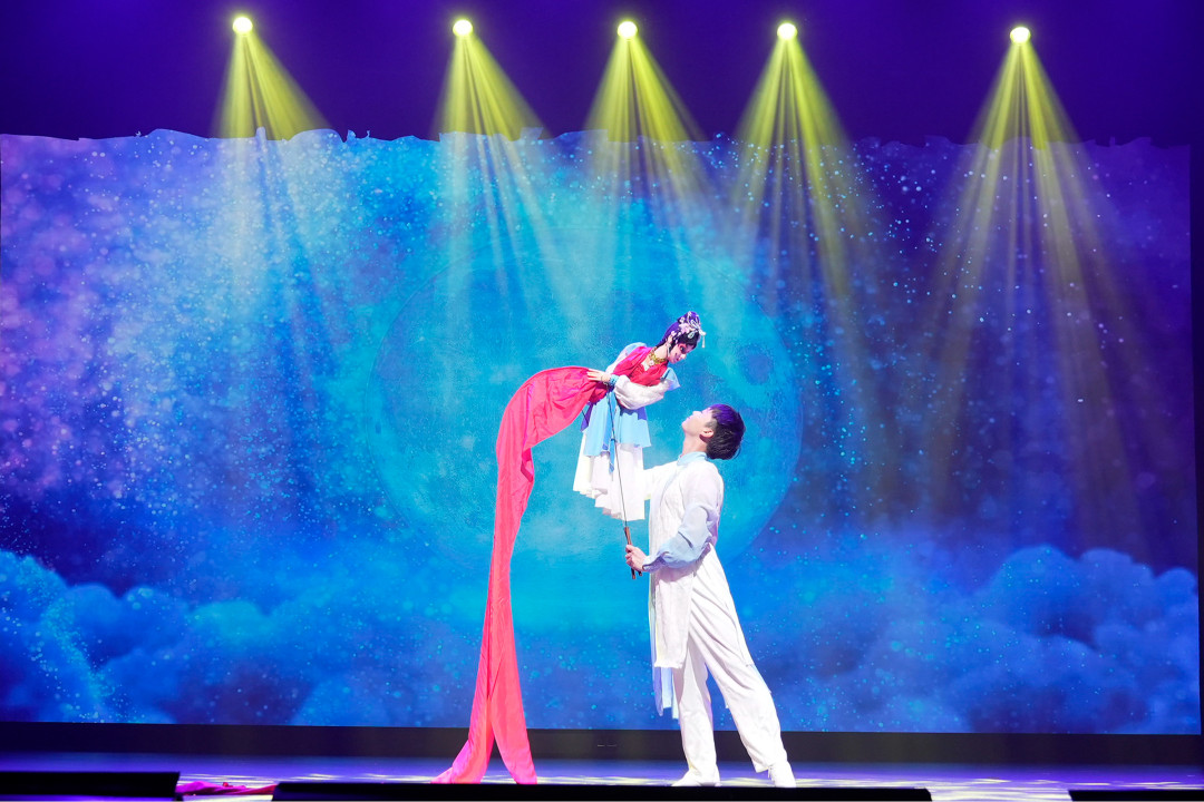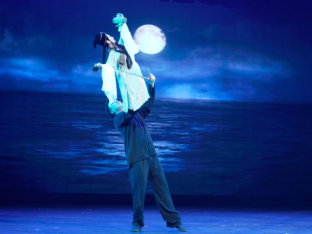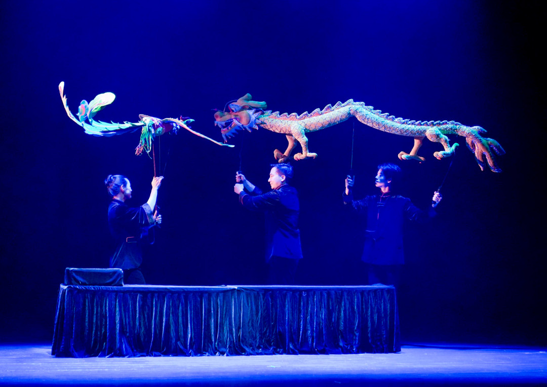 “有朋自远方来,不亦乐乎”,剧院一众演员现场表演了软体铁枝木偶节目《龙凤呈祥》、杖头木偶节目《东坡问月》和《长绸舞》。这三个节目均是非常有代表性的传统木偶表演,蕴含典型的中国文化意象——翩然起舞的龙与凤、对月抒怀的苏轼、飘逸如流云的长绸。演员们通过精湛的操纵技艺,让木偶活灵活现地展现各种动作与神态,呈现充满艺术感的舞台效果,赢得来宾们阵阵掌声与称赞。