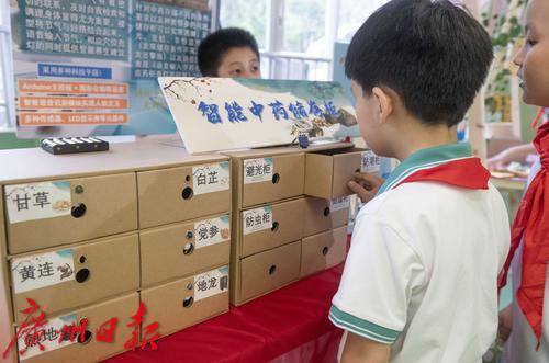 学生们通过科技发明、手工制作等多种形式的展示中医药文化的学习成果。