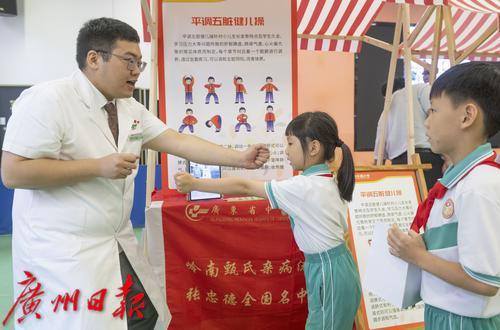 孩子们向广东省中医院医生学习健儿操。