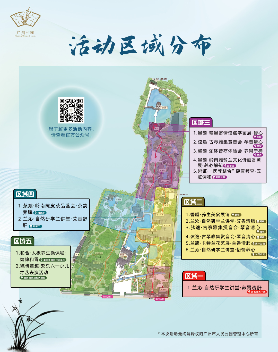 当龙舟水漫过青石板,岭南园林的飞檐翘角氤氲着艾草清香。端午佳节,广州兰圃突破传统康养模式,创新推出“蕙兰养心”康养游径,以“可赏、可闻、可触、可品、可悟”的沉浸式体验,为都市人开启一场唤醒身心的“五感四雅”疗愈之旅。