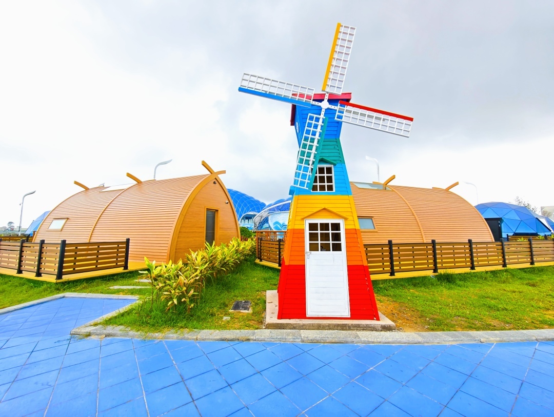 长沙湾服务区南区打造了海洋主题民宿,不仅有海滨风情的帆船式木屋、蓝色镜面星空球房,在客房内更配备了独立观景露台,让人饱览宽阔海景、彩虹风车和日落,收获一份美好惬意。