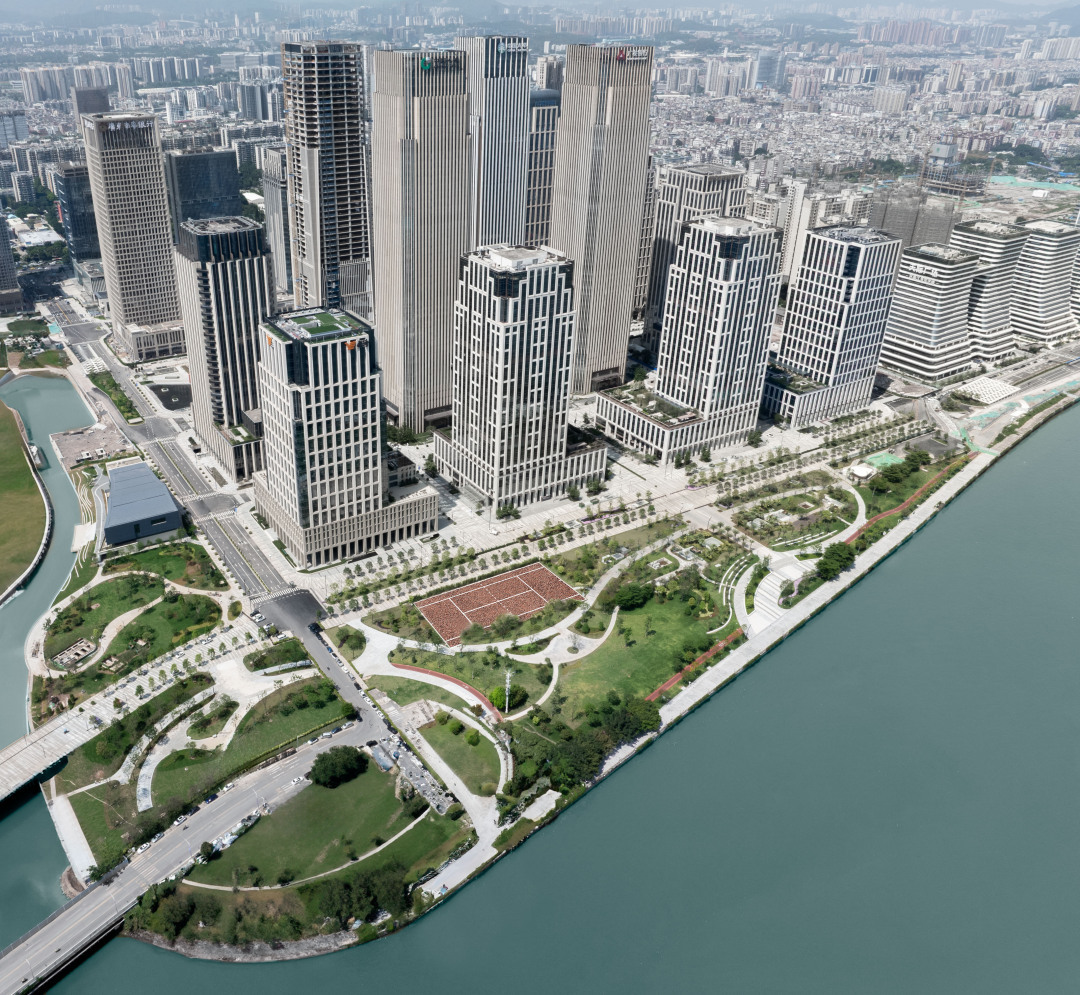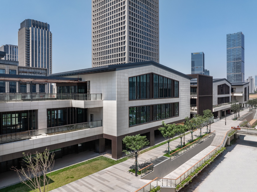 作为广州国际金融城起步区最核心的区域,金融城方城位于起步区中央,占地虽仅有0.2平方公里,却是广州金融浓度最高的地方之一。在设计上,由何镜堂院士团队操刀设计,呈“方城曲苑,翠岛玉带”的岭南特色格局。