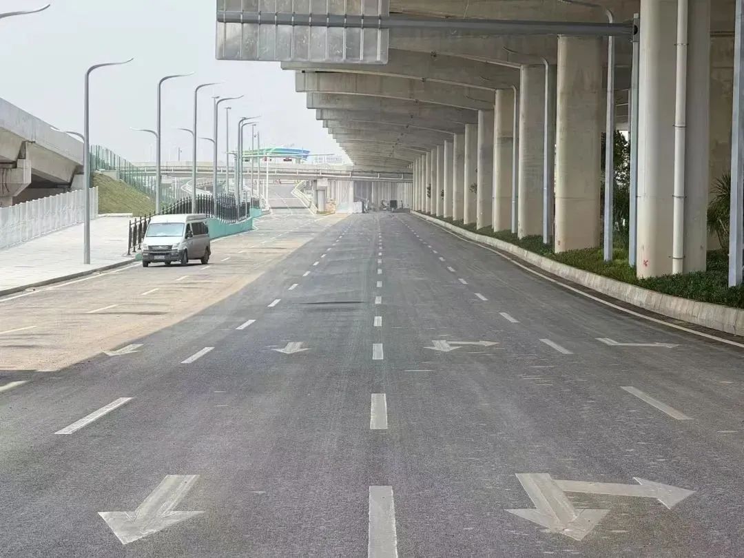 其中,万环西路南延线(十六涌半至海堤段)扩建工程全线5997米已贯通,红钢路及进出口高速出入口道路改造工程完成1470米道路拉通。