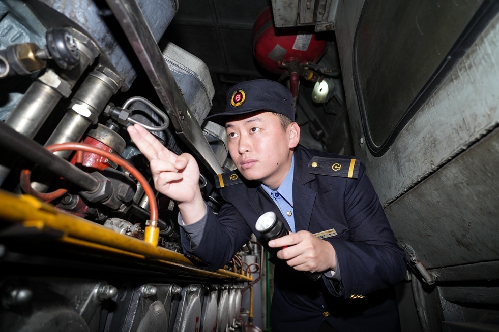 下午暴雨突至,能见度骤降。张力立即将雨刮器的频率调至高速挡位,同时降低速度并打起十二分精神,时不时站起身子,鼻尖几乎贴到前挡玻璃,他嘱咐副司机:“加强瞭望,注意地面信号灯显示情况。”在张力的精准操控下,列车安全正点到达。当连挂成功的机械咬合声穿透雨幕,副司机抹了把脸上的雨水:“活雷达这称号真不是白叫的。”