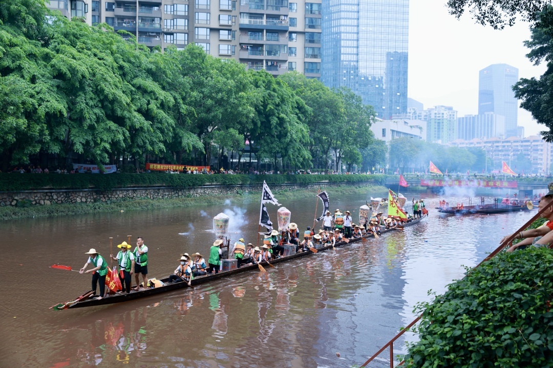 “干杯”“饮胜”!笑语喧哗中,流淌的是敦睦友好的邻里乡情。“每年来石牌趁景吃龙船饭,大家围坐一起谈天说地,老表们都好热情。”来自黄埔区双岗村的老表区叔叔说。
