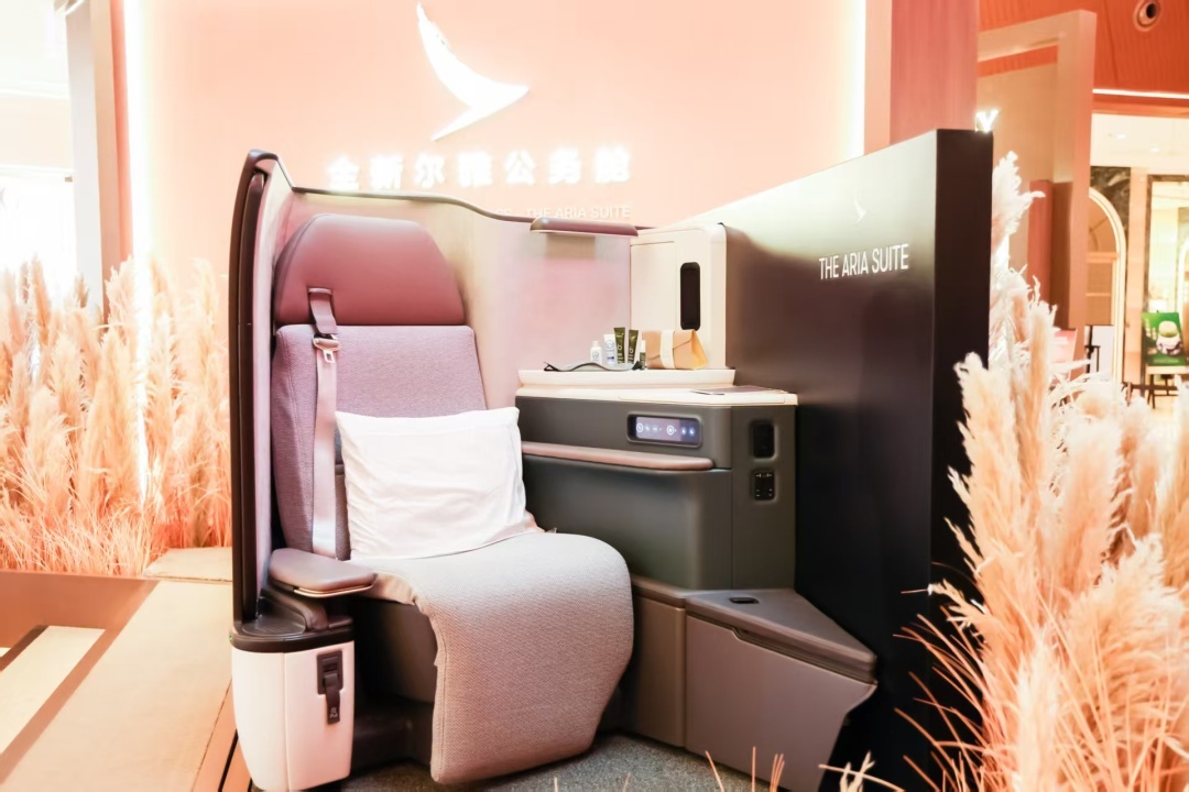 假期期间,经过太古汇M层中庭的市民将看到一个“诗与远方”的独特场景。金黄的麦浪之间摆放着的国泰航空全新客舱,将穿梭洲际的空中体验搬到了羊城。此次展示的是尔雅公务舱和特选经济舱。在空乘的指引下,浅色系的舒适座椅可以秒变180°空中大床,超大的24英寸4K屏幕让人仿佛置身于私人影院之中,还有雅致的鹅黄洗漱包精致度满满……参观者可近距离感受不一样的云端飞行享受。