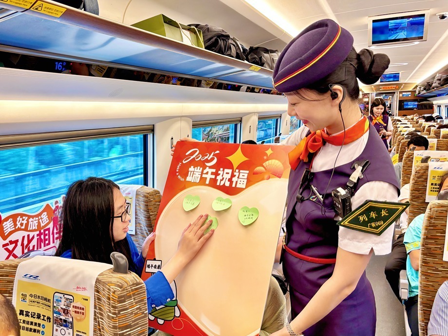 广州客运段在途经京广线、粤港澳大湾区、长三角城市群等10余趟列车上同步开展“美好旅途,粽享端午”活动,活动覆盖途经10省26市的高铁线路,单日服务旅客超万人次。