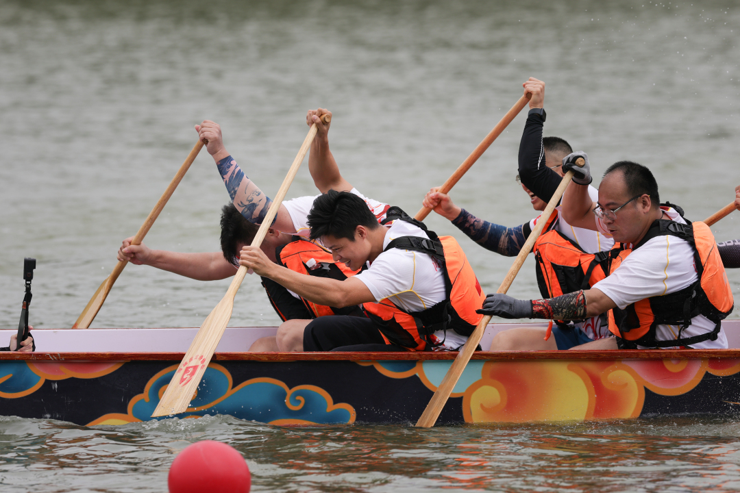 随后,首位“海珠湿地绿美观察员”、亚洲飞人苏炳添跨界参与龙舟竞渡,和冠亚季军队伍上演了一场热烈的友谊赛。