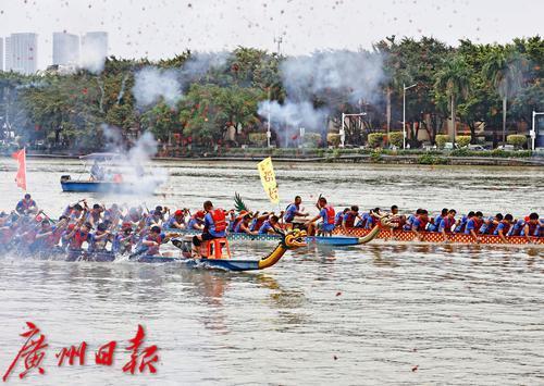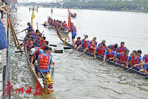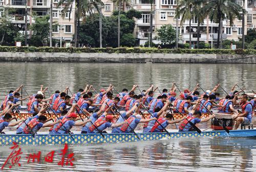 据了解,番禺洛浦东乡村的龙舟文化尤盛,历史悠久,东乡村龙舟队是广州龙舟界的“常胜冠军”。梁书记介绍说,通常在端午节前船员要训练40天,接着便是各乡村龙舟相互走“亲戚”,例如老表兄弟等都会“探亲”,他说这一趟过来表演也算是走“亲戚”的了。