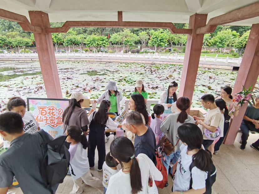 景区内,限定版“百花仙子密盒”成为游客打卡热点。“百花仙子”携“花花密盒”闪现莲花仙境和百花园,游客通过植物谜题、诗词接龙等互动环节赢取纪念品,在花香中沉浸式体验“文化游园闯关”。