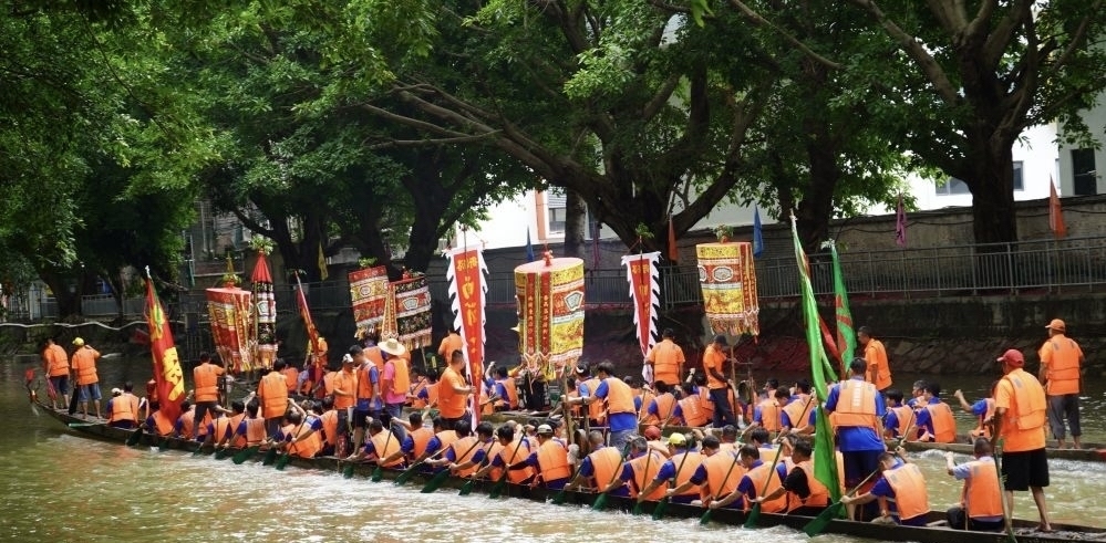 这一天是东乡村传统的龙舟“招景”日,来自南浦片的西一、西二、西三村,洛溪村、沙溪村,大石街的涌口村、大山村、桔树村,以及二沙、沥滘、石溪等地的兄弟村龙舟队,纷纷应邀前来三枝香水道趁景、探亲,共庆端午。