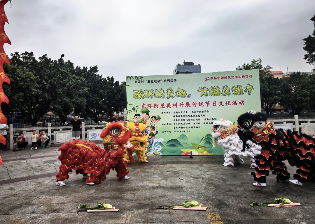 5月28日,广州市番禺区东环街龙美村开展“醒狮跃童趣 竹编庆端午”传统文化体验活动,通过醒狮表演、古诗教学、知识问答、竹编小船、趣味游戏等形式,为辖区儿童及居民打造了一场沉浸式文化盛宴,让传统佳节焕发童趣新彩。