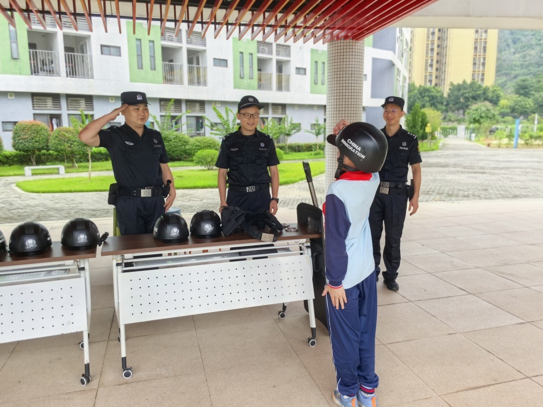 原本还带着些许紧张和担忧的民警们一下就被鼓励了。他们将精心准备的单警装备、防暴盾牌、执法记录仪等常用警用装备,在确保安全的前提下,一一展示出来。为更贴近接触孩子们,服务队提前学习了特殊儿童相处原则,秉持“真心尊重、充分支持”的理念,在活动过程中无条件积极关注孩子们的即时需求。
