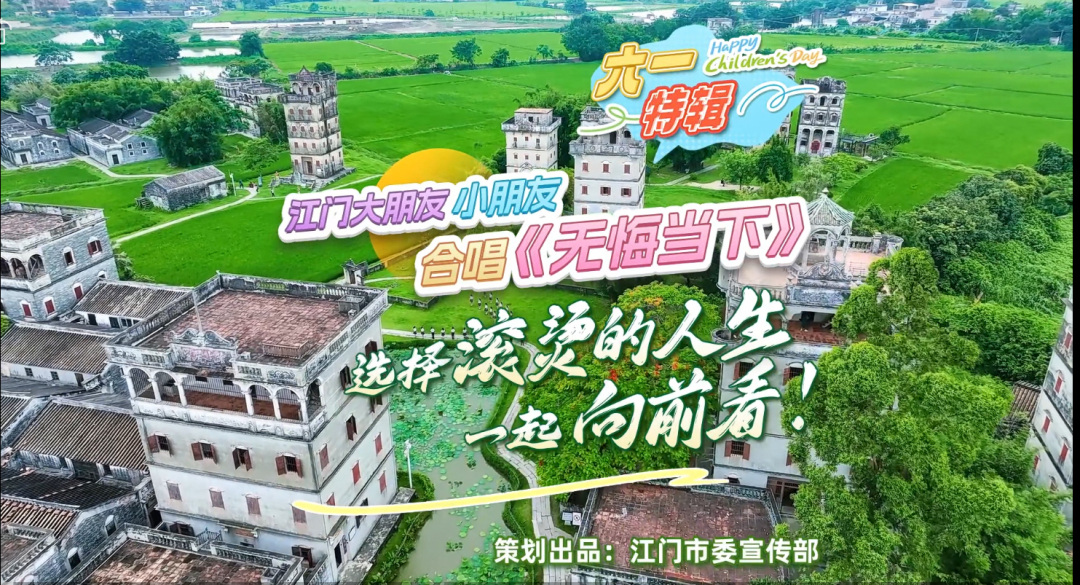 潘德林老师带着侨乡儿童以江门宽阔的田野、美丽的乡村、中西合璧的建筑为背景,用温暖的旋律、触达人心的歌词,唱出了对时光流逝的坦然,传递了坚守信念、无畏前行的力量。