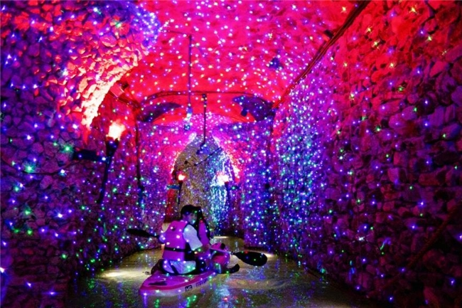 据悉,项目依托全国首个的“潮汐连通、火山礁石地貌、穿越多种生态带”的地下河系统,精心打造六大主题探秘区。作为首个以《山海经》神兽“小鯥”为背景的剧情光影漂流探秘,让游客将化身山海勇者,跟随小鯥的神启之路,穿越水陆空三界、破解经典迷阵,踏上一段充满神性祝福与自然奇幻的秘境之旅。
