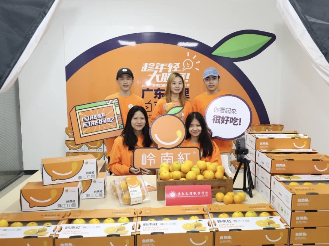 以赛促教。图为广东文理的学生正运用所学直播、营销等专业知识参与营销实战。