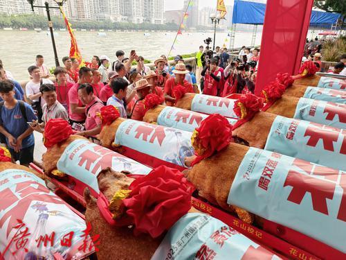 传统龙的优胜队伍获得烧猪和米酒等奖品。