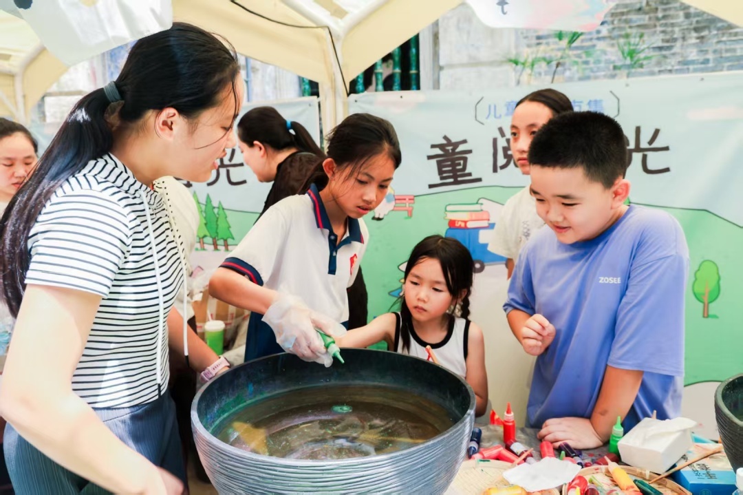 除了庄重的开笔礼外,先行图书发起的“童阅春光”儿童阅读市集于端午假期正式开市,连续两个周五六日,集结先行书店、尚书阁、阅见书店、曦阅书吧、山海书店及多家出版社,精选优质儿童读物,依托百年古建筑龙塘诗社及周边广场的独特空间,打造融合阅读、创意与文化于一体的亲子户外体验。这次市集以“阅读+”为核心,推出多个成长课堂与创意手作体验,从航天科普到法律启蒙,从黏土手作到香云纱鉴赏,探索不同领域的知识。快闪音乐秀与英语绘本共读,更将趣味与学习无缝链接,让家长与孩子在互动中感受“寓教于乐”的深意。