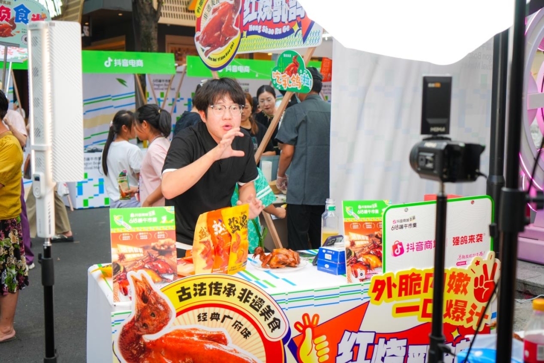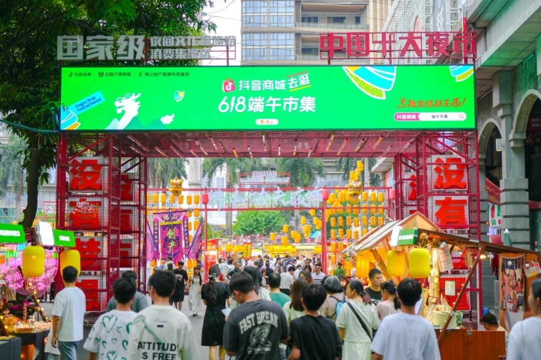 端午期间,抖音商城“去逛618端午市集”落户佛山创产直播电商基地,40多个抖音商城优质商家和佛山外贸优品企业走进文旅步行街区,开展线上线下互动式的市集直播,为节日消费增添了新的活力。