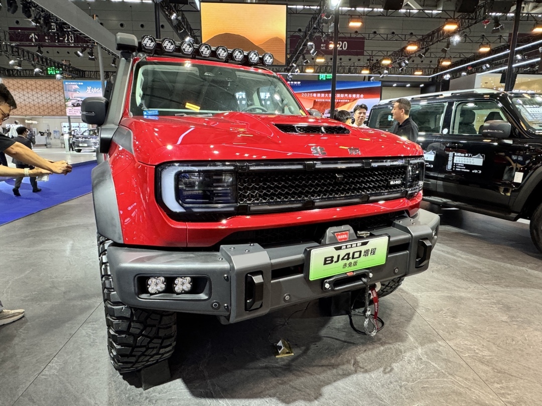 本次车展,北京越野以“原厂改装基因”为核心理念,还展出BJ40增程赤兔版、遥遥领先版等官改车型,以及“露营神器”BJ60雷霆重改露营版,全方位展现越野改装文化的多元魅力。其中,BJ40增程赤兔版聚焦颜值、性能、安全三大用户核心需求,进行了总价值超20万元的改装升级,官方指导价29.98万元。该车通过专属外观套件、性能强化组件及安全防护装备的深度优化,进一步强化硬派越野的视觉辨识度与全场景适应能力。