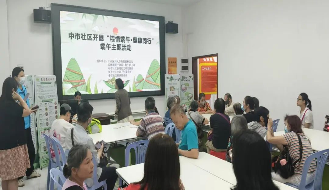 为弘扬中华优秀传统文化,营造温馨和谐的邻里氛围,同时将健康关怀送到居民心坎上,中市社区居委会于5月27日联合广州医科大学附属脑科医院、花地街道“双百工程”社工站及中市社区颐康服务站,在社区党群服务中心“聚乐角”温馨开启,以“健康赋能+文化传承”为主线的“粽情端午·健康同行”主题活动,为居民献上了一份特别的端午“安康”礼。