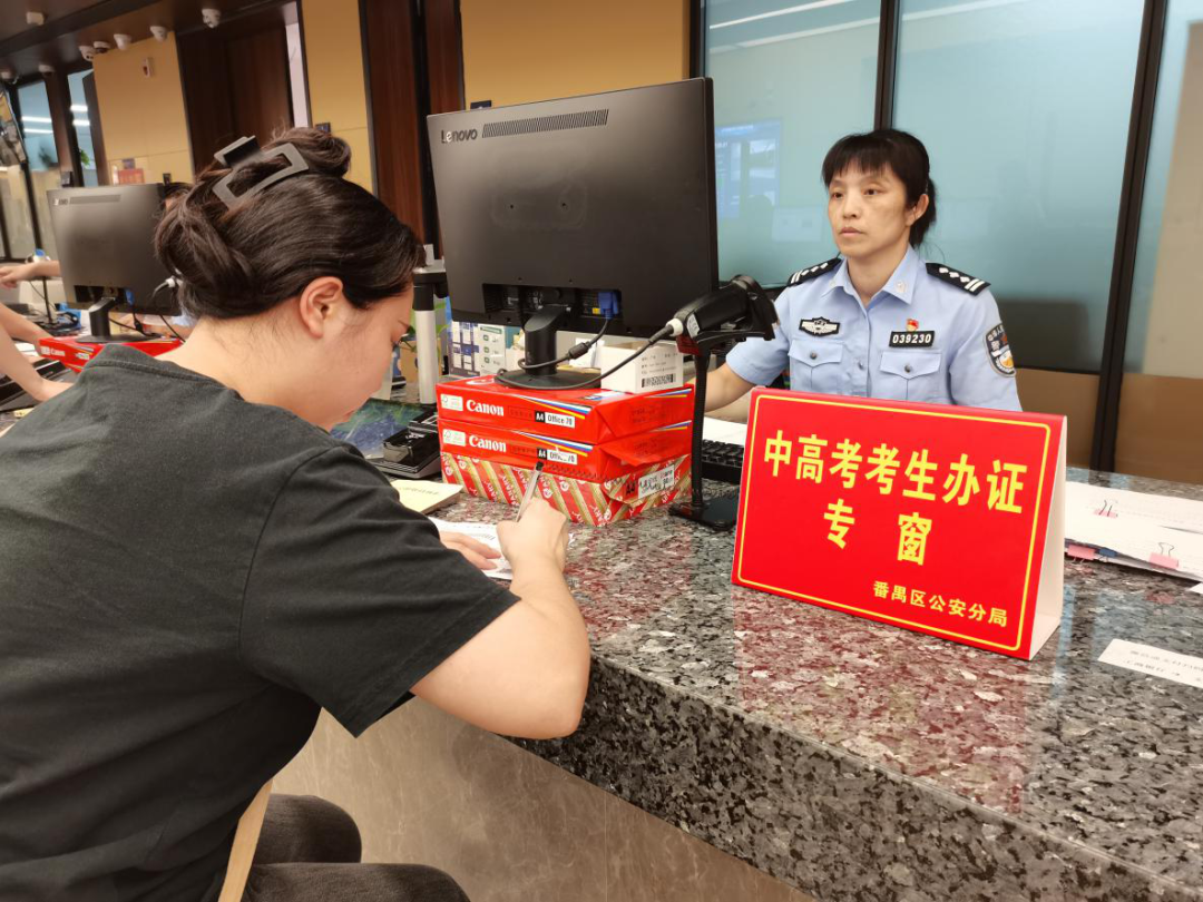 记者6月3日从警方获悉,今年5月以来,广州市番禺区各个中学迎来“考试报名季”,身份证办理也进入“高峰期”。为保障中高考学子顺利报名入学,广州番禺公安坚持“中午不打烊”,争取让群众“少跑腿”,加班加点为群众受理身份证业务。
