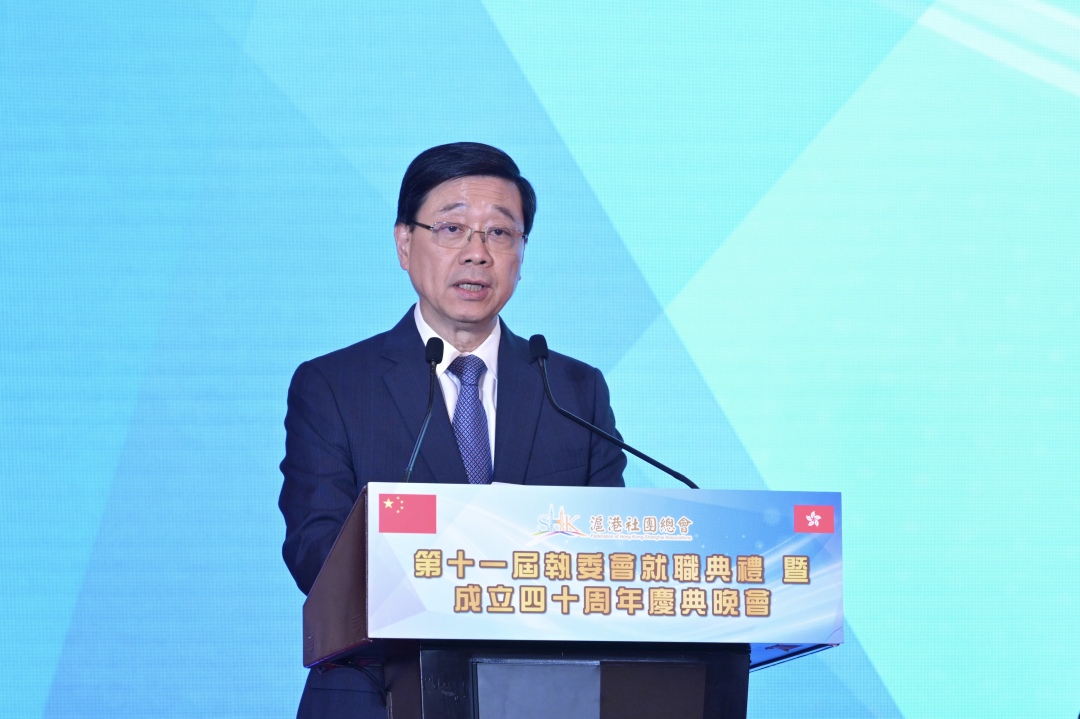 香港特區行政長官李家超六月三日在滬港社團總會第十一屆執委會就職典禮暨成立四十周年慶典晚會致辭。