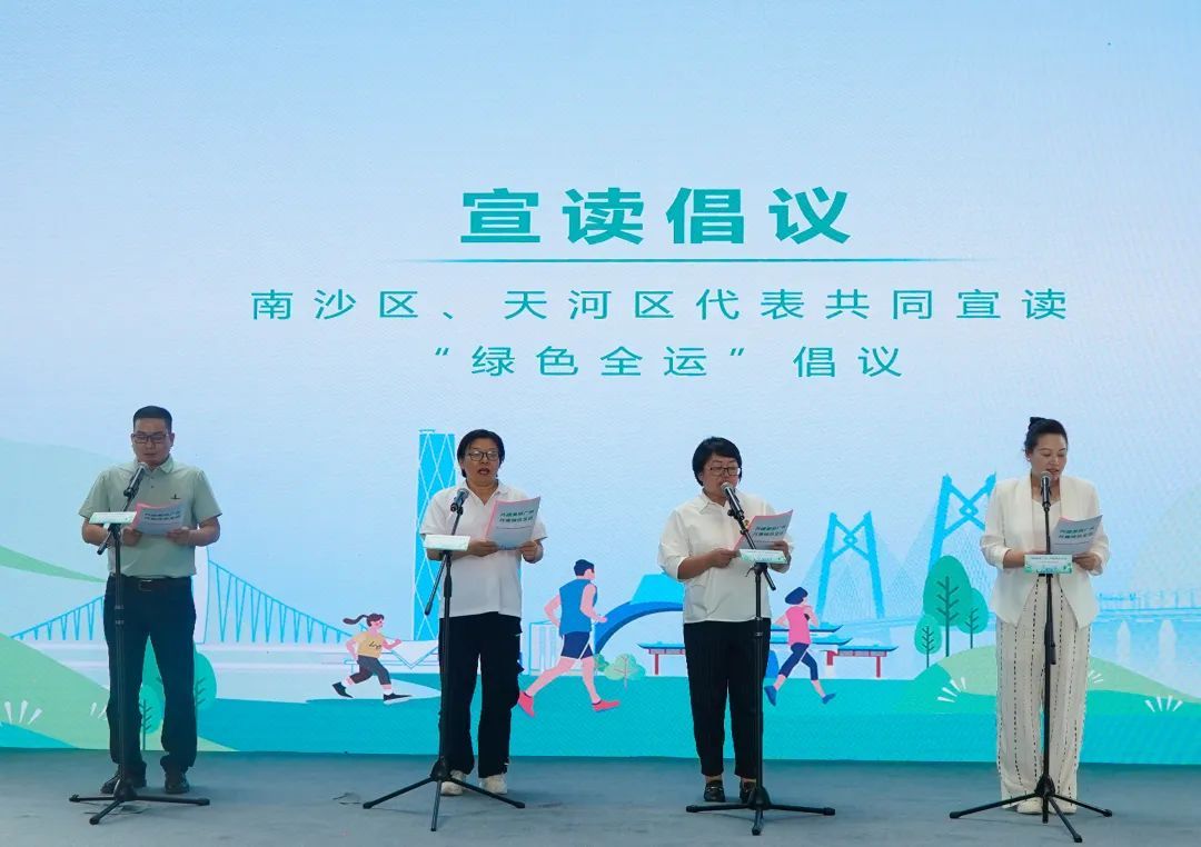在南沙会场启动仪式上,南沙、天河两区志愿者代表共同宣读“绿色全运”倡议书,呼吁市民积极参与生态环保行动,践行绿色生活方式。