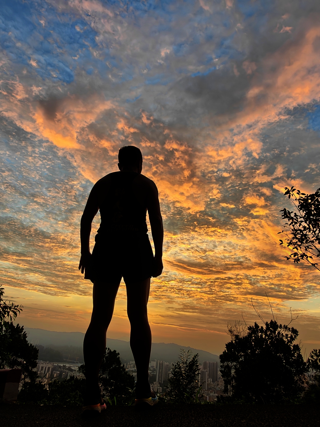 从黑夜跑到天明,他精准确定日出的时间点,知道哪一个角度最适合看日出,“一年四季的日出时间不一样,看到的景色也不一样;站在不同的山头,日出也很不一样”。