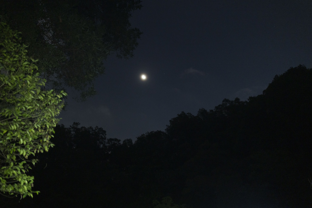 凌晨4:00,夜与昼交接的“丁夜”,白云山一片静谧,树木葳蕤,散发香气。月亮在山涧照不进蜿蜒的山路,偶有远方两点幽绿亮光,是野猫的眼睛。松鼠在林中发出一声声叫响,是外出觅食的对话。
