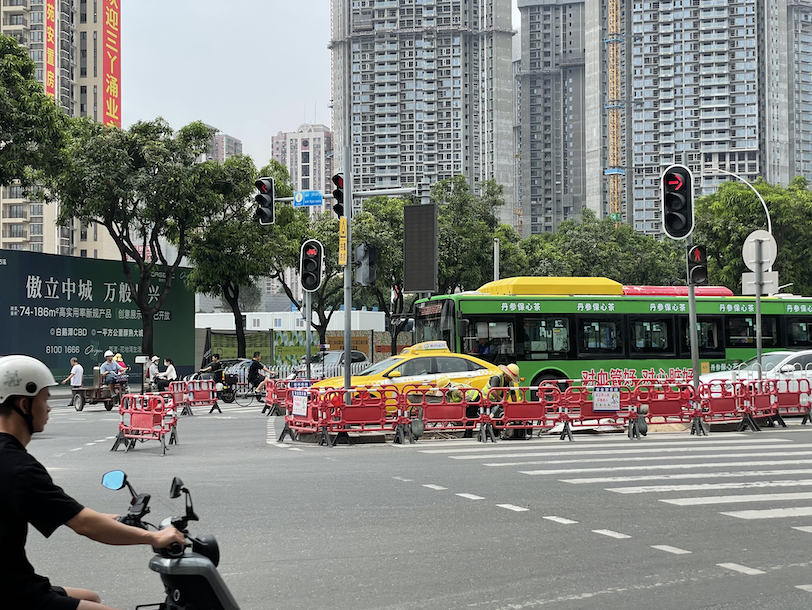 除了上述十字路口外,东漖北路位于汾水公交站周边部分车道也在围蔽施工中。