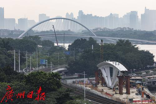 2025年6月5日,记者在阅江路观察到,距离海心桥不远的黄埔涌步行桥正火热施工,广州塔旁又将添新桥。 据悉,黄埔涌步行桥,定位是广州“休闲商务区”的璀璨纽带,串联起广州塔、海心桥至国际媒体港,成为连接传统与现代的桥梁。其设计灵感源自岭南文化的精髓,融合了传统建筑艺术与自然元素,打造出一座既简洁又优雅的步行天桥。未来,站在这座桥上,游客可以一览珠江新城的都市繁华与珠江的壮丽景色。