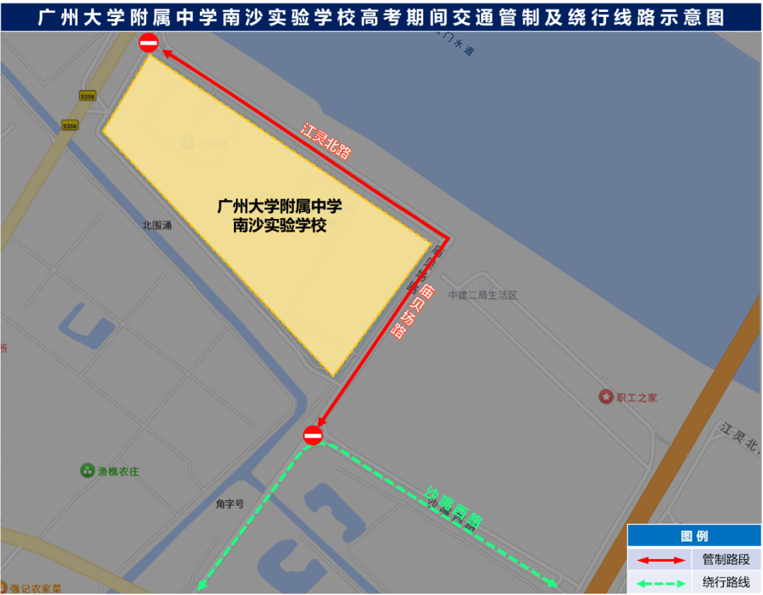 高考期间将对江灵北路及庙贝场路广大附中段双向实施交通管制,过往车辆建议经沙嘴西路绕行。