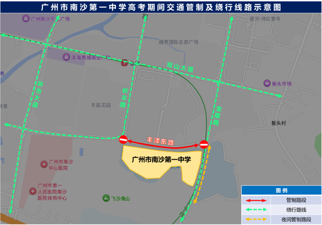 6月5日,广州市公安局南沙区分局发布高考期间临时交通管制公告。根据公告,届时南沙交警将对广州市南沙第一中学、华南师范大学附属南沙中学、广州市南沙东涌中学、广州大学附属中学南沙实验学校考点周边路段实施临时交通管制。