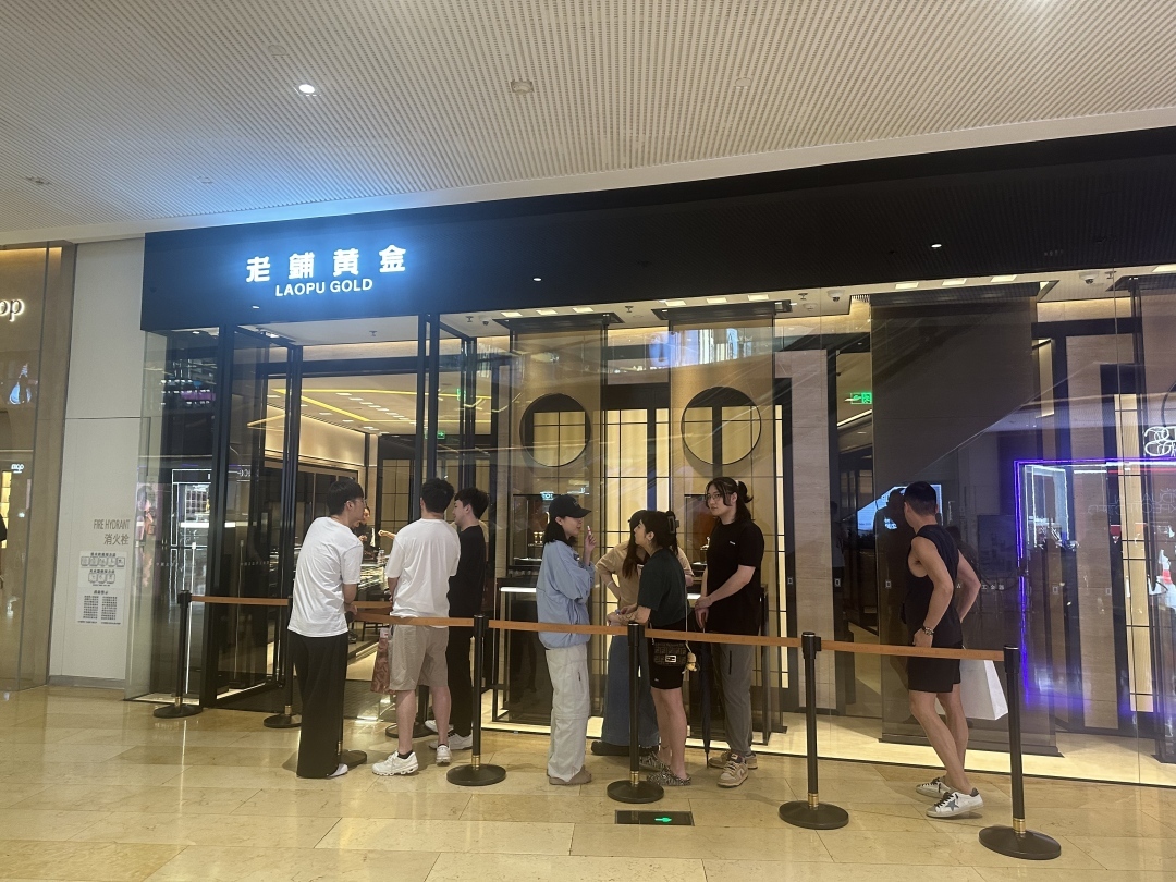 (即使是工作日下午,老铺黄金门店前仍有消费者在排队。)