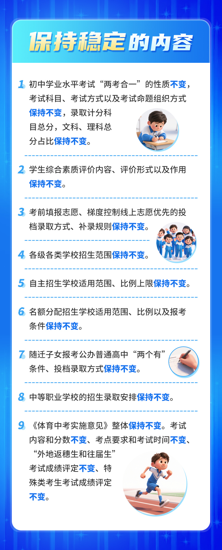 6月5日,广州市教育局印发《2027—2029年深化高中阶段学校考试招生制度改革的实施意见》《2027年—2029年广州市初中学业水平考试体育与健康科目考试实施意见》,并发布相关解读说明2027—2029年中考政策的“变”与“不变”。