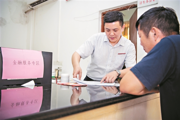 冯炳镇向村民介绍银行新业务。