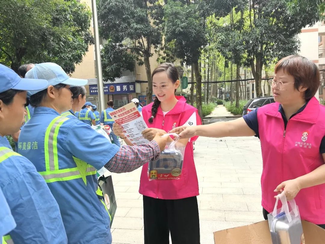 5日,夏港街青年社区携手辖区商户开展“商居联动,‘埔哥’同行”办实事,夏日送健康活动。为高温下坚守岗位的环卫工人送上实用物资等,用实际行动传递关怀。