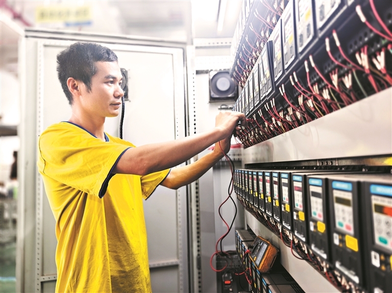 傅国强用专业技能守护着自动化物流枢纽的“健康”。