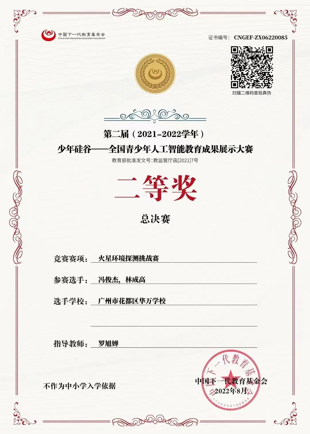 数学奖项:数学活动中取得全国大赛金奖7枚、银奖13枚、铜奖19枚。省市级赛事获奖不断。