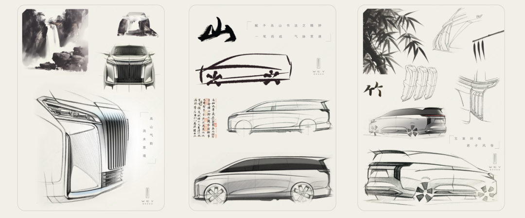 鲁晓波教授从美学学术角度出发指出,东方美学的本质是“内外兼修、天人合一、和谐共生”,“大气”是其生动体现,既指形式上的恢宏磅礴,也指精神上的包容从容,是东方独有的美学气质。长城汽车以“内外兼修”的东方美学为基础,将“大气”融入魏牌全新高山的设计语言。其正面展现“飞瀑流水”的磅礴意境,侧面腰线气脉贯通,尾灯呈现“茂林修竹”的诗意,在刚劲线条与写意留白间实现平衡,让工业美学体现东方哲学的时空纵深。